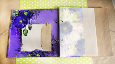 Размер 21х21 см, текстурные обложки, пластиковая страничка, конверт и акварельная вставка.